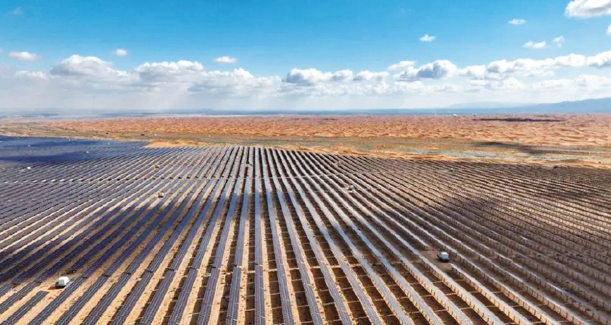 ▲中衛(wèi)市沙坡頭區(qū)的國家能源集團寧夏騰格里沙漠新能源基地