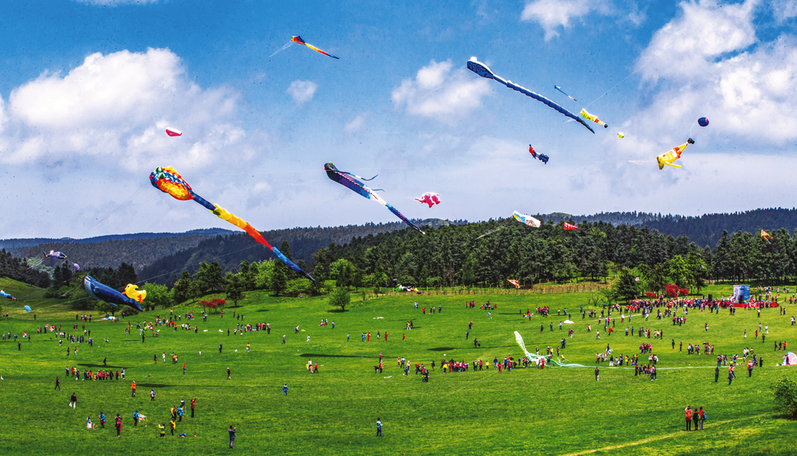 ▲在仙女山森林公園大草原上舉辦的風(fēng)箏節(jié)活動