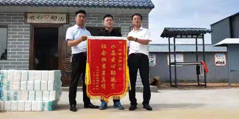 殷家墕村負責人將一面寫有“水晶愛心助脫貧,社會擔當顯真情”的錦旗送到了李總的手上,以此來表達對水晶國際酒店支持殷家墕村脫貧攻堅工作的感激之情。李總表示,水晶國際酒店將會把助力扶貧工作當做他們義不容辭的責任和義務繼續(xù)做下去。