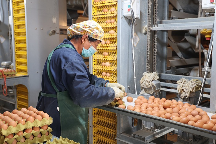 府谷縣新民鎮(zhèn)桃峁村村民王波在村里成立府谷縣正北農(nóng)牧業(yè)發(fā)展有限公司,建了養(yǎng)雞場(chǎng),他將村民種植的玉米按市場(chǎng)價(jià)收購(gòu)后,把養(yǎng)殖場(chǎng)的糞便免費(fèi)提供給村民用于糧食種植,發(fā)展起了循環(huán)產(chǎn)業(yè)。同時(shí),鼓勵(lì)村民參股,并簽訂保底分紅協(xié)議。王波告訴記者,“養(yǎng)殖場(chǎng)現(xiàn)有蛋雞存欄5萬(wàn)余羽,日產(chǎn)雞蛋5500斤,村民每年有保底分紅?!?/p>