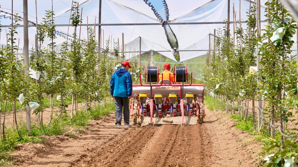 6月21日,在黃陵縣阿黨鎮(zhèn)丁村的蘋果幼園內(nèi),縣農(nóng)業(yè)農(nóng)村局邀請中國小康建設(shè)研究會(huì)糧油分會(huì)的技術(shù)人員給前來觀摩油莎豆試種的各鎮(zhèn)辦分管農(nóng)業(yè)的負(fù)責(zé)人講解油莎豆種植的技術(shù)要點(diǎn)和社會(huì)效益。不遠(yuǎn)處,一臺(tái)包含播種、施肥、覆土、埋管的油莎豆綜合試種機(jī)正在果園間進(jìn)行試種作業(yè),隨著機(jī)械的轟鳴聲和土地的翻旋,現(xiàn)場呈現(xiàn)出一幅繁忙的夏播圖。