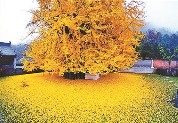2016年秋天,一組關(guān)于寺院內(nèi)這棵古銀杏樹的照片躥紅網(wǎng)絡(luò),照片中,銀杏樹的樹葉在一場秋雨后灑滿地面,頗為壯觀,看上去滿眼金黃。隨后,看到了這組照片的游客開始大量涌入寺院,希望能夠親眼見到這棵古銀杏樹的美景。