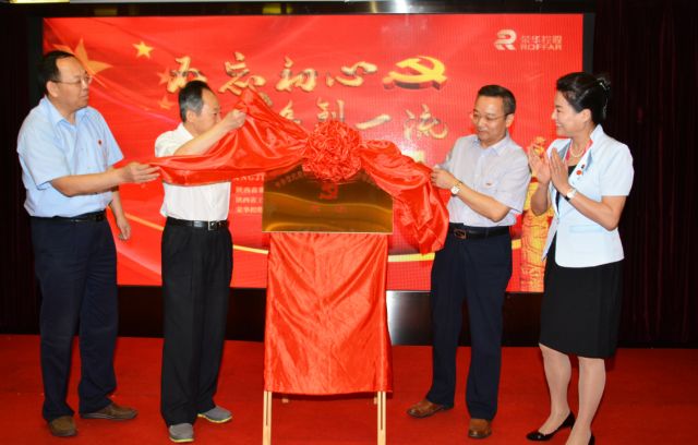 陜西省委黨校副校長魏文章,西安市委組織部副部長、市非公黨建工委書記田周民,西安市經(jīng)開區(qū)黨工委副書記、區(qū)非公黨建工委書記蘇俊良,榮華控股黨委書記、董事長崔榮華共同為“榮華黨?!苯遗?。