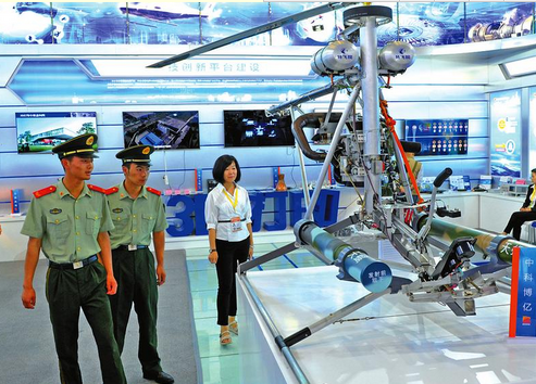 6月5日,在絲博會上,一款用于國防邊境的安防偵查無人機展示了西安高新區(qū)科技研發(fā)力量。 本報記者 杜瑋攝
