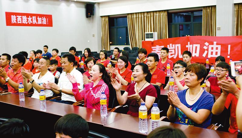 秦凱家人和體育局領(lǐng)導(dǎo)以及隊(duì)友觀看比賽直播三秦都市報(bào)記者吳岸彪攝