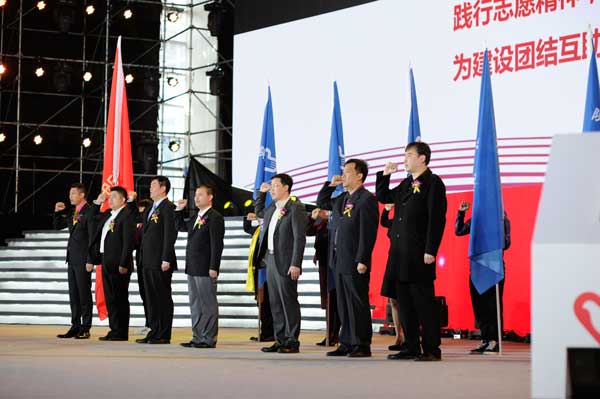 成立大會上,團中央志工部綜合協(xié)調(diào)處處長黃英鋒,團省委副書記單舒平與三八婦樂集團董事長袁曉峰共同為“陜西三八婦樂志愿者聯(lián)合會”揭牌,并授“陜西三八婦樂志愿者聯(lián)合會”總會會旗以及6個分會會旗。團省委副書記單舒平代表省青年志愿者協(xié)會致辭。