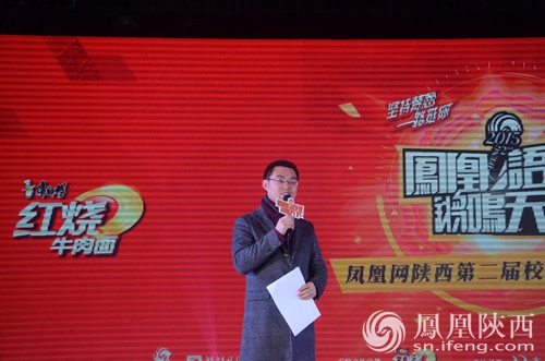 本場比賽由鳳凰衛(wèi)視胡玲、陜西廣播電視臺徐杰主持。鳳凰網(wǎng)陜西頻道董事長楊宏武發(fā)表致辭,他說:“本屆校園主持人大賽,以全新的理念和開放的資源進行主持人才選拔,為具有主持夢想的選手搭建了最閃亮的展現(xiàn)舞臺,具有積極意義?!?/p>