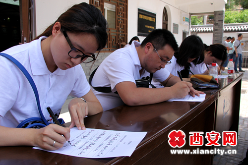 今天上午,2015“青年志愛國情”——紀(jì)念抗戰(zhàn)勝利70周年全省網(wǎng)媒黨團(tuán)青年延安行活動走進(jìn)延川縣梁家河參觀學(xué)習(xí)。主辦方還安排了書法寫作環(huán)節(jié),增進(jìn)互動,成員們緊握手中的筆桿,書寫《長征》詩歌。