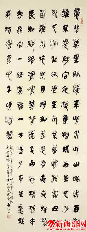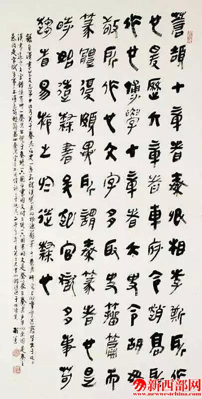 亮寶樓二樓展廳,懸掛著100多幅秦隸書法作品。這些字體或許并不為人熟識,它就是被歷史塵封了兩千多年,只有在《說文解字序》中第一次被提到的秦隸。秦隸是今文字的最初形態(tài),也是隸書的第一個成熟形態(tài)。