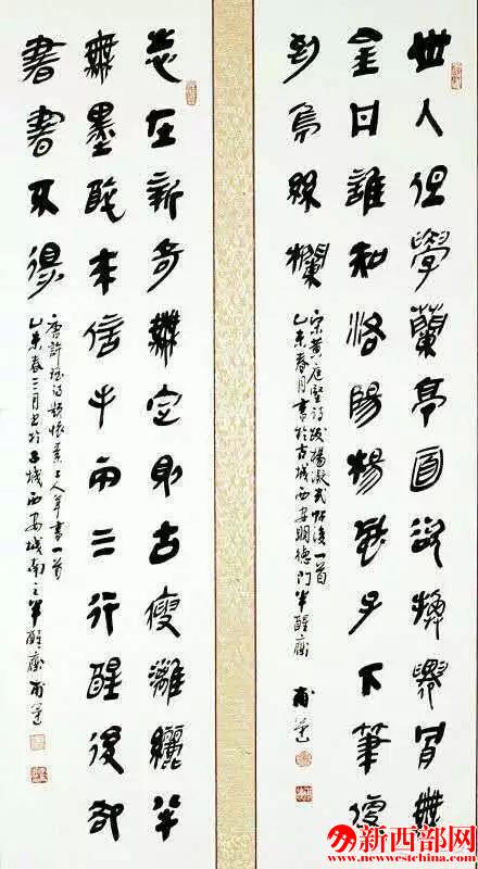 李教授一邊大量研究考古發(fā)掘出的秦隸資料,一邊臨習(xí)之,從青川木牘至里耶木牘,以解決秦文化在書法藝術(shù)中的表現(xiàn)方法及風(fēng)格,并最終形成一種獨具風(fēng)采的秦隸書法藝術(shù),有“華夏秦隸第一人”之譽。先生作品深受國人厚愛,兩岸四地所見頗多。其作品不僅被黨和國家領(lǐng)導(dǎo)人收藏,還被世界文化名人如日本的池田大作、馬來西亞的繼程法師收藏。
