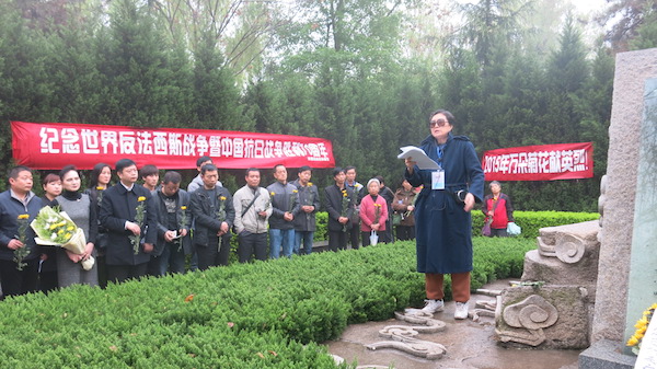 參加活動(dòng)的志愿者向死難同胞和抗戰(zhàn)英烈默哀并致敬