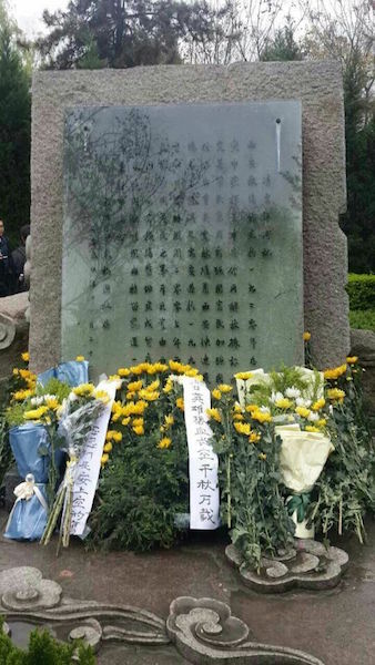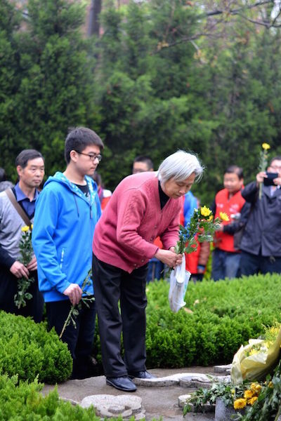 志愿者向紀(jì)念碑敬獻(xiàn)的花籃