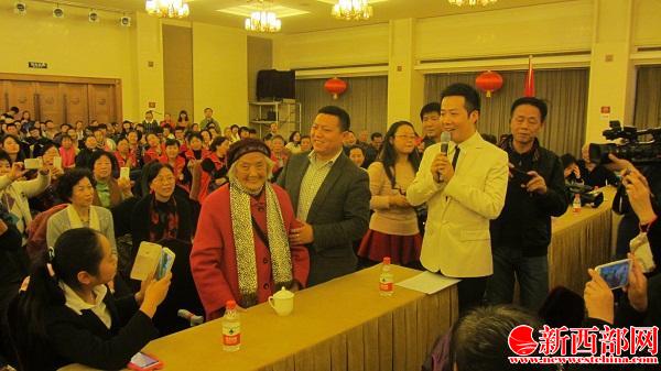 在西安經(jīng)營餐館的何卓遠(yuǎn)用“一元愛心套餐”幫助西安94歲高齡孤寡老人崔育英長達(dá)6年的感人故事在全國范圍引起熱烈反響。何卓遠(yuǎn)攙扶著崔育英大媽來到會場,參會者全體人員向何卓遠(yuǎn)投來敬佩的目光。新西部網(wǎng) 王順利攝