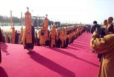 10月16日,在陜西法門寺,中國佛教協(xié)會副會長第十一世班禪額爾德尼·確吉杰布在開幕式上致辭。當日,第27屆世界佛教徒聯(lián)誼會大會在陜西寶雞開幕,來自30多個國家和地區(qū)的高僧大德、中外嘉賓和佛教四眾弟子四千余人云集供奉佛指舍利的佛門圣地法門寺,歡慶世界佛教界這一盛會。中共中央政治局常委、全國政協(xié)主席俞正聲向大會發(fā)來賀信。(楊景龍攝)