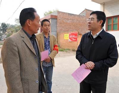 2013年10月25日,安東書記在寶雞市麟游縣調(diào)研時與群眾和“紅袖章”親切交談