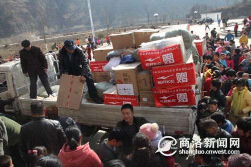 經(jīng)山陽(yáng)縣鑫盛藏香豬生態(tài)養(yǎng)殖專業(yè)合作社負(fù)責(zé)人王浩欣牽線搭橋,29日上午,陜西獅子會(huì)一行200余人駕車(chē)從西安來(lái)到了山陽(yáng)縣銀花鎮(zhèn),他們帶著50000多件衣服,分成服務(wù)小組,分別走進(jìn)了銀花鎮(zhèn)的11個(gè)村。在山陽(yáng)縣銀花鎮(zhèn)商路河村,村民們?cè)诖逯?shū)的帶領(lǐng)下領(lǐng)取衣服,幾名獅子會(huì)的工作人員在現(xiàn)場(chǎng)忙個(gè)不停,看見(jiàn)抱小孩的村民,他們就從已經(jīng)分好類的衣服里取出適合小孩穿的衣服;看到老人們,他們都會(huì)找出老年人穿的衣服,輕輕的送到手上。陜西獅子會(huì)主席劉文革表示,獅子會(huì)的宗旨主要是傳播感動(dòng)和傳播愛(ài),通過(guò)幫助他人,不斷擴(kuò)大社會(huì)正能量。“我們捐贈(zèng)衣服,就是希望家庭困難的人在冬天能感受到溫暖,感受到愛(ài)的力量?!彼f(shuō)道。
