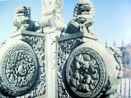 這座天下第一獅橋,橋上的石獅子大小各異,千姿百態(tài),大到丈余,小到幾寸,或站或走,或爬或滾,或蹲或躍,有的威風凜凜,有的憨態(tài)可掬,無一雷同。馬金龍邊走邊為我們介紹,千獅橋的獅子雖然多,但每一幅作品都有一個故事、一個主題?!斑@個是母子情深,這是深思熟慮,這是風華正茂……”這不僅僅是一個龐大的石雕藝術,更是一個五彩繽紛的童話世界。江南出宰相,綏德出石匠。樸實多情的綏德漢子把自己的全部心血和愛都奉獻給了自己刀下的藝術品,將他們多少年來的幸福和苦難、喜悅和悲傷,還有他們遠大的抱負和夢想都刻在石獅子上。