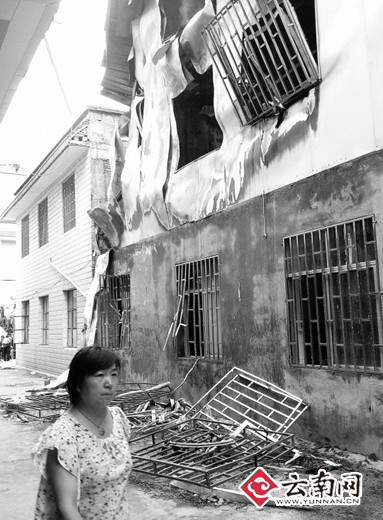火災(zāi)發(fā)生后,盤龍區(qū)消防中隊(duì)、昆明消防特勤二中隊(duì)、五華區(qū)消防沙溝埂中隊(duì),接警后迅速出動(dòng),調(diào)集了9輛消防車,出動(dòng)55名消防官兵參與撲救。經(jīng)過(guò)官兵們的英勇?lián)渚?,大火終于被撲滅。記者趕到現(xiàn)場(chǎng)時(shí),大火雖已消去,但屋內(nèi)余煙未盡。整棟樓房被燒得面目全非,樓上的門窗也被燒得掉落下來(lái)?,F(xiàn)場(chǎng)警戒線仍未解除,茨壩派出所和消防人員仍在現(xiàn)場(chǎng)勘查。