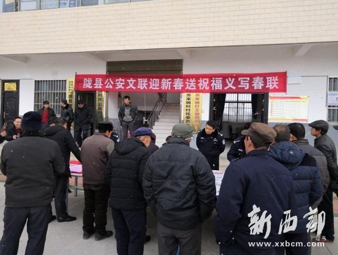 瑞雪兆豐年,丹墨寫愛心。1月30日,隴縣公安局組織公安文聯(lián)書法愛好者赴包抓的貧困村——溫水鎮(zhèn)蘇家塬村,為群眾義務(wù)書寫春聯(lián),送去了濃濃的新春祝福。