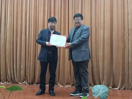表彰大會(huì)上,西安培華學(xué)院傳媒學(xué)院院長(zhǎng)杜耀峰為西安商網(wǎng)總編輯宋海龍頒發(fā)了西安培華學(xué)院傳媒學(xué)院客座教授聘任證書。