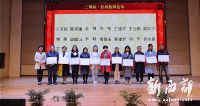 《陜西教育》雜志(教學版)主編范希望、西安市教育科學研究所副所長賈玲、西安市曲江第一中學常務(wù)副校長陳勇剛、“葉圣陶”系列賽事主席葉剛,“葉圣陶”系列賽事陜西組委會主任呂勇,為參加第一屆《圣陶金典》優(yōu)秀論文的獲獎老師們頒發(fā)了一、二、三等獎證書。