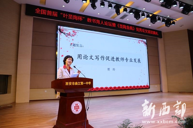 4月20日上午,全國首屆“葉圣陶杯”教書育人論壇暨《圣陶金典》優(yōu)秀論文頒獎典禮,在西安市曲江第一中學隆重舉行。西安市教育科學研究所副所長賈玲、《陜西教育》雜志(教學版)主編范希望、西安市曲江第一中學常務(wù)副校長陳勇剛、“葉圣陶”系列賽事主席葉剛、葉圣陶杯賽系陜西組委會主任呂勇、陜西省中語會副會長蒲耀才、陜西省中語會副理事長曹公奇等嘉賓出席活動現(xiàn)場,并與來自陜西省內(nèi)100余所學校的教師代表及獲獎教師共同參加論壇及頒獎典禮。