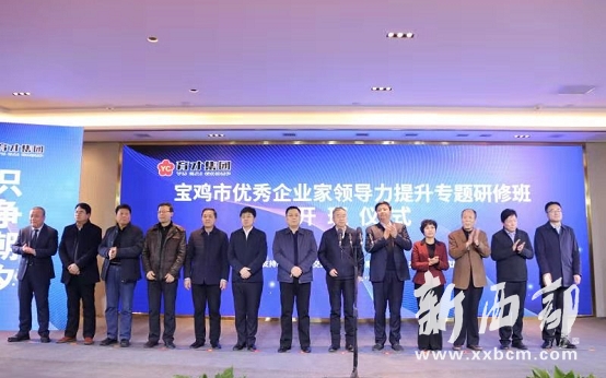 1月6日上午,育才集團(tuán)在寶雞高新奧斯頓酒店隆重舉行寶雞市優(yōu)秀企業(yè)家領(lǐng)導(dǎo)力提升專題研修班開班儀式。寶雞市人大常委會(huì)主任馬秉寅,市政協(xié)主席白升安,市委副書記吳鐵,市政府副市長(zhǎng)高建華,育才集團(tuán)黨委書記、董事長(zhǎng)史軍輝,育才集團(tuán)黨委副書記、常務(wù)副董事長(zhǎng)史濤出席開班儀式。