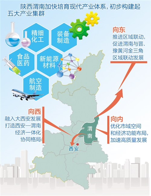 渭南加快培育現(xiàn)代產(chǎn)業(yè)體系,初步構(gòu)建起精細(xì)化工、裝備制造、食品醫(yī)藥、新能源材料、航空制造五大產(chǎn)業(yè)集群。