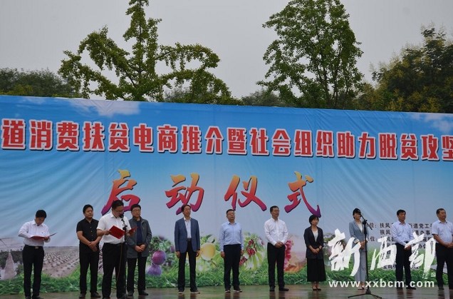 秋獲碩果五谷豐、消費扶貧系真情。8月21日扶風縣城關街道在百合廣場隆重舉辦消費扶貧電商推介暨社會力量助力脫貧攻堅啟動儀式。這次活動不僅是深入貫徹落實習近平總書記來陜考察重要講話精神,高質(zhì)量打贏脫貧攻堅戰(zhàn)的重要舉措,也是大力發(fā)揚“五見”精神,積極探索“互聯(lián)網(wǎng)+消費扶貧”,延伸優(yōu)質(zhì)農(nóng)產(chǎn)品銷售鏈條,不斷拓寬群眾增收渠道的具體行動。出席活動的有扶風縣政府齊軍建縣長,縣委常委、縣委宣傳部方巖部長,縣人大副主任侯景寅,縣政協(xié)副主席李文暉,市旅游協(xié)會會長韓平社,縣農(nóng)業(yè)農(nóng)村局局長葛永岐,縣扶貧辦副主任楊寶軍,縣商信局副局長、縣電子商務公共服務中心主任楊釗、縣市場監(jiān)管局副局長王金旗等領導同志。寶雞市旅游協(xié)會、市民用爆破器材行業(yè)協(xié)會、寶雞偉思特學校、扶風縣電子商務協(xié)會相關負責人;城關街道各村“四支隊伍”及黨員、貧困戶代表及15家企業(yè)、合作社共400余人一同參加了活動。