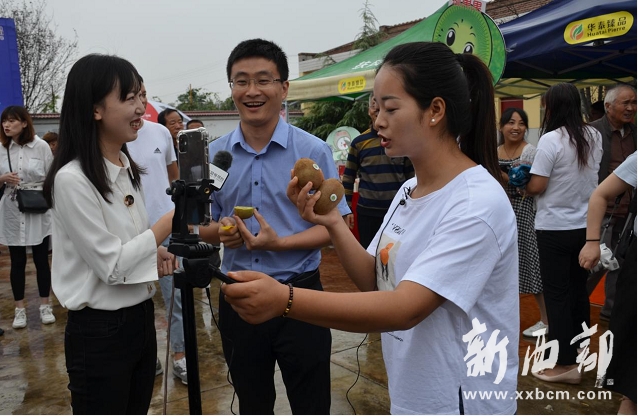 活動(dòng)現(xiàn)場,扶風(fēng)縣人民政府副縣長趙炳震借助央視網(wǎng)直播平臺(tái)推介午井獼猴桃,為扶風(fēng)獼猴桃代言。十多名網(wǎng)紅活躍在活動(dòng)現(xiàn)場,5名主播負(fù)責(zé)企業(yè)展品區(qū)帶貨銷售,5名主播前往獼猴桃園帶貨銷售。
