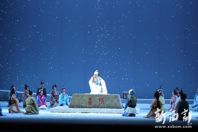 戲曲實際上是用詩來引領的,而詩的獨立性造就了整個中國戲曲的獨特品質(zhì);傳統(tǒng)文化對“天地君親師”是以敬畏的方式呈現(xiàn)的,戲曲形象化的把這種文化精神薪脈相傳,精神對望,也是中國傳統(tǒng)文化里最神圣的文化典型。《望魯臺》通過詩樂、歌舞的戲曲手法,以民意化的視角把無形的師道有形化的展現(xiàn),這是《望魯臺》給我感動,甚至震撼時候的一種感受。