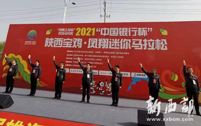 4月27日09:00,“我要上全運(yùn)”百場(chǎng)馬拉松2021“中國(guó)銀行杯”陜西寶雞·鳳翔迷你馬拉松賽在寶雞市鳳翔區(qū)西鳳大道鳴槍開跑,來(lái)自全國(guó)各地的近2000名運(yùn)動(dòng)員、跑步愛好者參加5公里迷你馬拉松賽角逐。