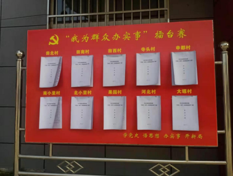 打擂臺(tái)的是誰(shuí)?各村黨支部。比什么?為群眾辦實(shí)事的成效和進(jìn)展。
