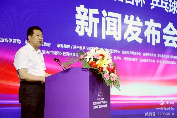 7月4日上午,“一帶一路”陜西2021寶雞“百合杯”乒乓球大獎賽暨第38屆“百合杯”乒乓球聯(lián)賽新聞發(fā)布會在西安舉辦。據(jù)介紹,賽事將于7月9日至11日在陜西省寶雞市鳳翔體育館舉行,屆時,來自陜西、寧夏、青海、甘肅、重慶、上海、江蘇、浙江、山東、山西、河南、河北、遼寧等13余個省20余個城市地區(qū)的210支代表隊千余名乒乓球運動員參加。當日發(fā)布會現(xiàn)場,陜西省體育局經(jīng)濟處處長李佳蔚進行致辭,寶雞市體育局局長任小康介紹賽事籌備情況,鳳翔區(qū)與陜西華廈集團控股有限公司簽訂冠名商協(xié)議,寶雞市體育局與威贏賽事運營有限公司簽訂戰(zhàn)略合作協(xié)議。省乒羽網(wǎng)管理中心主任盧升虎,省乒乓球協(xié)會主席張秦生,鳳翔區(qū)區(qū)委常委、副區(qū)長馬少輝,鳳翔區(qū)區(qū)委常委、副區(qū)長阿依帕夏·阿不都吾甫爾,陜西華廈集團控股有限公司總裁張羽,威贏賽事運營有限公司董事長吉云波,以及中、省、市30多家媒體參加發(fā)布會。