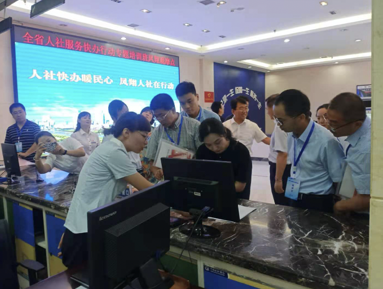 7月6日,全省“人社服務(wù)快辦行動”現(xiàn)場觀摩會在鳳翔區(qū)召開。全省人社系統(tǒng)近百名人社干部到鳳翔區(qū)市民中心服務(wù)大廳觀摩了人社服務(wù)“打包辦”“提速辦”“簡便辦”有效做法。人社部行風(fēng)辦處長劉晴,省人社廳行風(fēng)辦負責(zé)人孫煜出席觀摩活動,寶雞市人社局黨組書記、局長李永林,鳳翔區(qū)委書記趙永懷,區(qū)委常委、常務(wù)副區(qū)長汪文岐全程陪同觀摩。