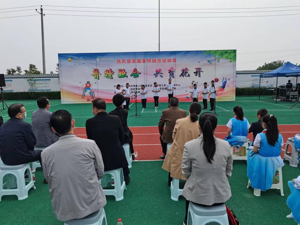 扶風(fēng)縣副縣長孟曉只參加活動并致辭,他希望全縣普校和特校要共同努力,積極推進(jìn)各種形式的普特融合教育,讓更多人加深對特殊學(xué)生的了解,讓普通孩子與特殊孩子建立友善、信任、互助的良好關(guān)系,讓特殊孩子感受到社會各界的溫暖。