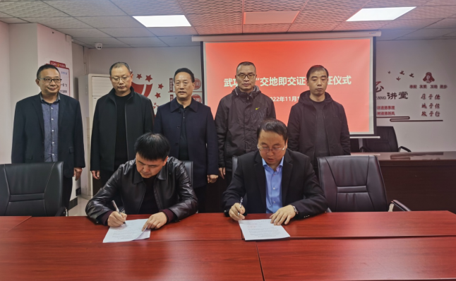 11月10日,武功縣移動(dòng)公司負(fù)責(zé)人從武功縣不動(dòng)產(chǎn)登記局負(fù)責(zé)人手中接過不動(dòng)產(chǎn)權(quán)證書。