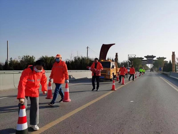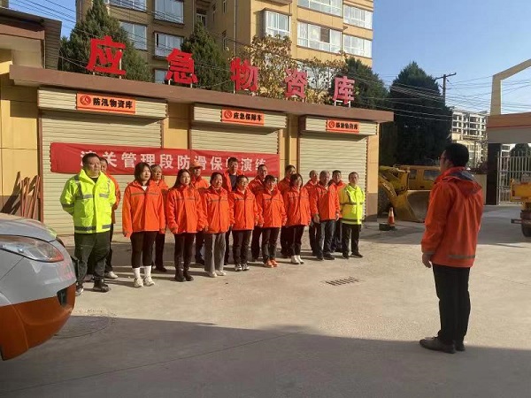11月15日上午,潼關公路段組織人員車輛積極開展了2022年冬季防滑保暢應急演練。