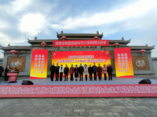 11月15日,由省委宣傳部、省委文明辦、省文聯(lián)組織的陜西省“文明實踐宣講團”走進鳳翔區(qū)城關(guān)鎮(zhèn)六營村。在六營村新時代文明實踐廣場,9名宣講團成員緊緊圍繞學(xué)習(xí)貫徹黨的二十大精神主題,把理論知識轉(zhuǎn)化成百姓話語,將“大理論”和“小故事”相結(jié)合,有新時代新征程創(chuàng)造新輝煌的理論宣講,有黨的二十大代表的精心分享,有干貨滿滿的惠民政策解讀,還有抑揚頓挫的朗誦、歡歌笑語的相聲、朗朗上口的快板等。