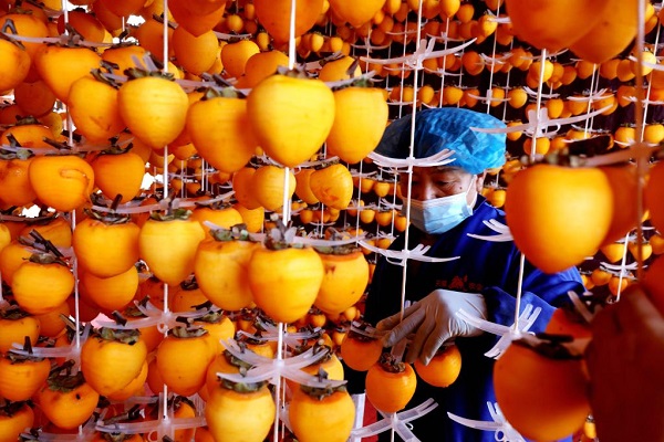 新華網(wǎng)西安12月14日電(記者張晨?。┳鳛橹氖磷觾?yōu)質(zhì)產(chǎn)區(qū),陜西富平被稱為“中國柿鄉(xiāng)”。近年來,富平縣依托科研院所和龍頭企業(yè),開展全方位產(chǎn)業(yè)鏈研究,推進農(nóng)特產(chǎn)品精深加工,培育壯大新型經(jīng)營主體,火紅的柿子成為帶動當(dāng)?shù)卦鍪罩赂弧⑧l(xiāng)村振興的特色優(yōu)勢產(chǎn)業(yè)。