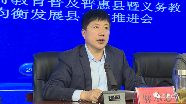 4月25日下午,眉縣召開學前教育普及普惠縣暨義務教育優(yōu)質(zhì)均衡發(fā)展縣創(chuàng)建工作推進會,縣委常委、宣傳部部長麻承志參加會議并講話,會議由副縣長李倩主持。