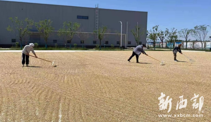 “24小時(shí)提供小麥晾曬場(chǎng)、為群眾開(kāi)放室內(nèi)外場(chǎng)地庫(kù)房……”。隨著一輛輛滿載小麥的車輛進(jìn)入園區(qū),許多群眾揮汗晾曬小麥,大片空地上新收割的麥子“愜意”地享受陽(yáng)光的熱火場(chǎng)面呈現(xiàn)在眼前……。這是近日在陜西省寶雞市鳳翔金秋物流園門(mén)口,看到的大幅通告和廠區(qū)內(nèi)的繁忙場(chǎng)面。
