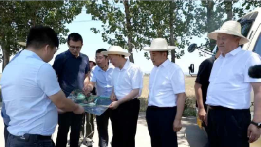7月17日,中國工程院院士趙春江,陜西省土地工程建設集團黨委書記、董事長韓霽昌一行來寶雞市千陽縣考察智慧無人農場建設情況??h委書記劉方斌,縣委副書記、縣長張湛林,縣委常委、副縣長何紅軍一同考察。