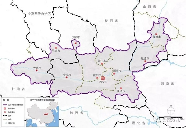 | 關(guān)中平原城市群規(guī)劃范圍圖 |