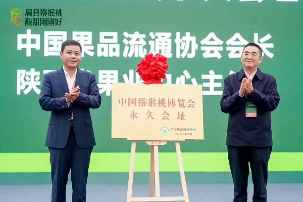在開幕式上,眉縣縣委書記王繼萍致辭,杭州中際智庫產(chǎn)業(yè)研究院院長章建慶發(fā)布了《2023年中國·眉縣獼猴桃指數(shù)》,農(nóng)本咨詢創(chuàng)始人賈梟介紹了眉縣獼猴桃品牌升級戰(zhàn)略,中國郵政集團有限公司寶雞市分公司黨委書記、總經(jīng)理李明介紹了“家鄉(xiāng)味道,郵愛傳遞”活動,中國綠色食品發(fā)展中心副主任陳兆云為眉縣頒授“全國綠色食品原料標準化生產(chǎn)基地”牌匾,中國果品流通協(xié)會會長魯芳校、省果業(yè)中心主任趙廣柱共同為國家級(眉縣)獼猴桃產(chǎn)業(yè)園區(qū)“中國獼猴桃博覽會永久會址”揭牌。