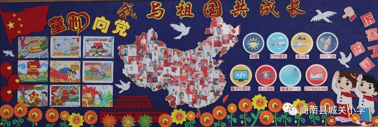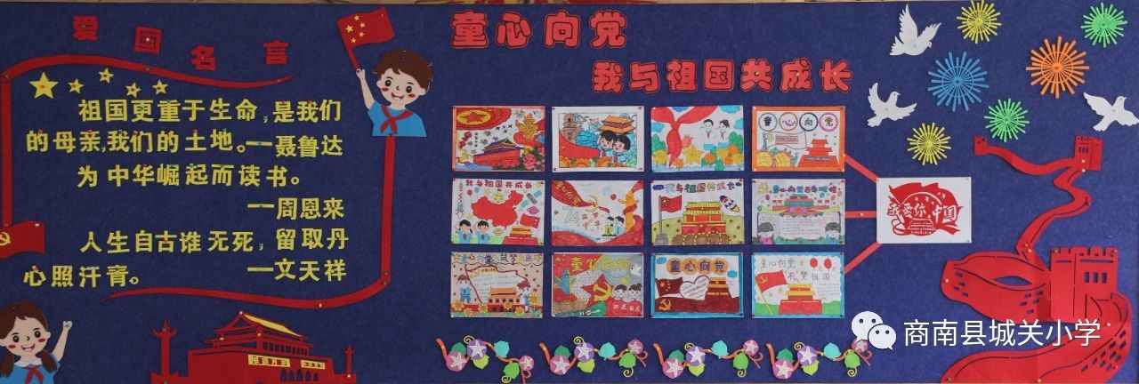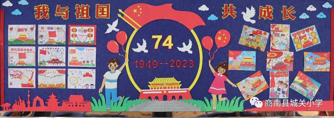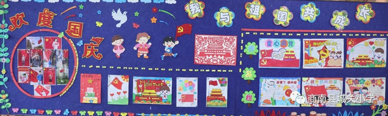 瑞雨收,畫(huà)楓潛,金秋十月迎國(guó)慶,教室新顏展班風(fēng)。為慶祝第74個(gè)國(guó)慶節(jié),商南縣城關(guān)小學(xué)的樂(lè)善學(xué)子們用靚麗的色彩表達(dá)著對(duì)祖國(guó)的深情,把熾熱的愛(ài)國(guó)熱情,融進(jìn)文化墻中。各班的風(fēng)格不同,卻一樣地承載著孩子們對(duì)盛世中國(guó)的祝福,為他們的精心設(shè)計(jì)和愛(ài)國(guó)情懷點(diǎn)個(gè)贊吧!