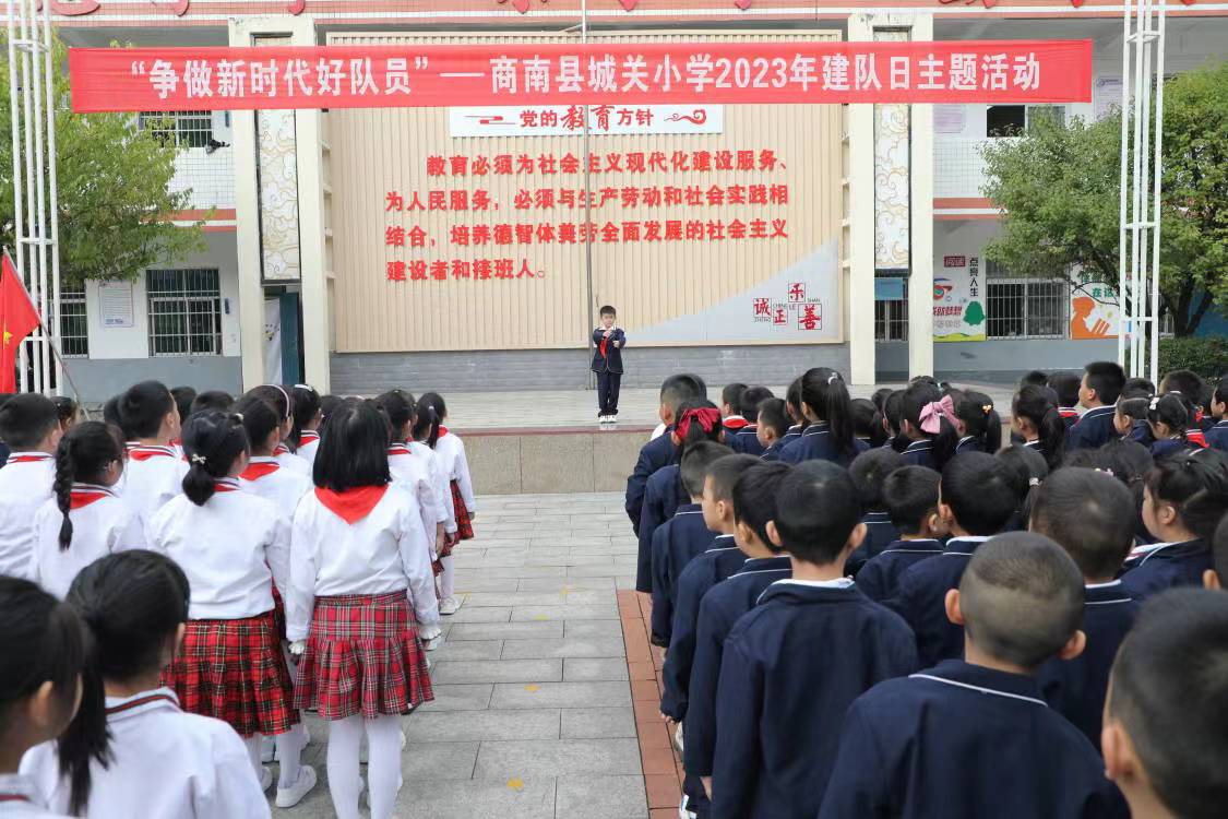 為慶祝中國(guó)少年先鋒隊(duì)建隊(duì)74周年,增強(qiáng)少先隊(duì)員的光榮感和組織歸屬感,在10月13日建隊(duì)日來(lái)臨前夕,商南縣城關(guān)小學(xué)舉行了“喜迎建隊(duì)日·爭(zhēng)做新時(shí)代好隊(duì)員”納新主題活動(dòng)。在校領(lǐng)導(dǎo)、老師和同學(xué)們的見(jiàn)證下,259名二年級(jí)學(xué)生光榮的加入了少先隊(duì)組織,被吸收為2022級(jí)第二批少先隊(duì)員。
