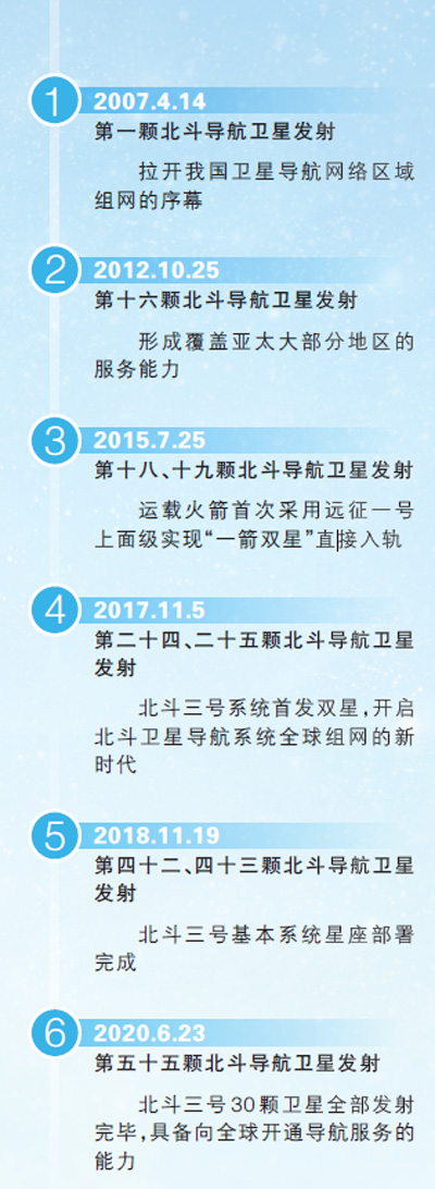 994年北斗衛(wèi)星導(dǎo)航系統(tǒng)啟動建設(shè)。20多年間,西昌衛(wèi)星發(fā)射中心完成44次北斗發(fā)射,先后將4顆北斗一號試驗(yàn)衛(wèi)星、55顆北斗二號和北斗三號組網(wǎng)衛(wèi)星送入預(yù)定軌道,任務(wù)成功率100%。2017年開啟全球組網(wǎng)以來,兩年半時(shí)間,連續(xù)成功實(shí)施18次北斗系統(tǒng)組網(wǎng)發(fā)射,將30顆北斗三號導(dǎo)航衛(wèi)星精準(zhǔn)送入預(yù)定軌道,創(chuàng)造了全球衛(wèi)星導(dǎo)航系統(tǒng)發(fā)射組網(wǎng)速度新紀(jì)錄。