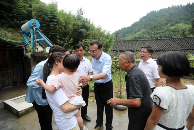李克強(qiáng)7月6日下午驅(qū)車近一小時(shí)來到貴州銅仁江口縣壩盤鎮(zhèn)掛扣村,考察脫貧攻堅(jiān)和防汛救災(zāi)安置等情況??偫碚f,近一段時(shí)期以來,我國南方多地發(fā)生洪澇災(zāi)害,習(xí)近平總書記作出重要指示。各地區(qū)各部門一定要貫徹落實(shí)好總書記重要指示精神,確保把人民生命安全放在第一位。