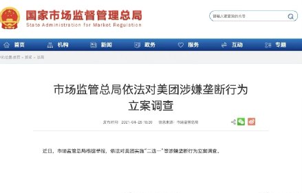 市場監(jiān)管總局依法對美團涉嫌壟斷行為立案調(diào)查